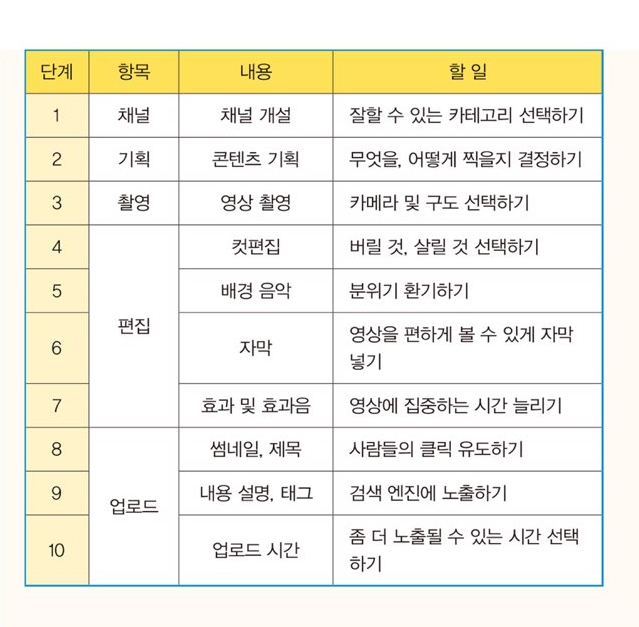 유튜브를 하기 위한 세 가지 요소는 '기획, 찰영, 편집' 이다.